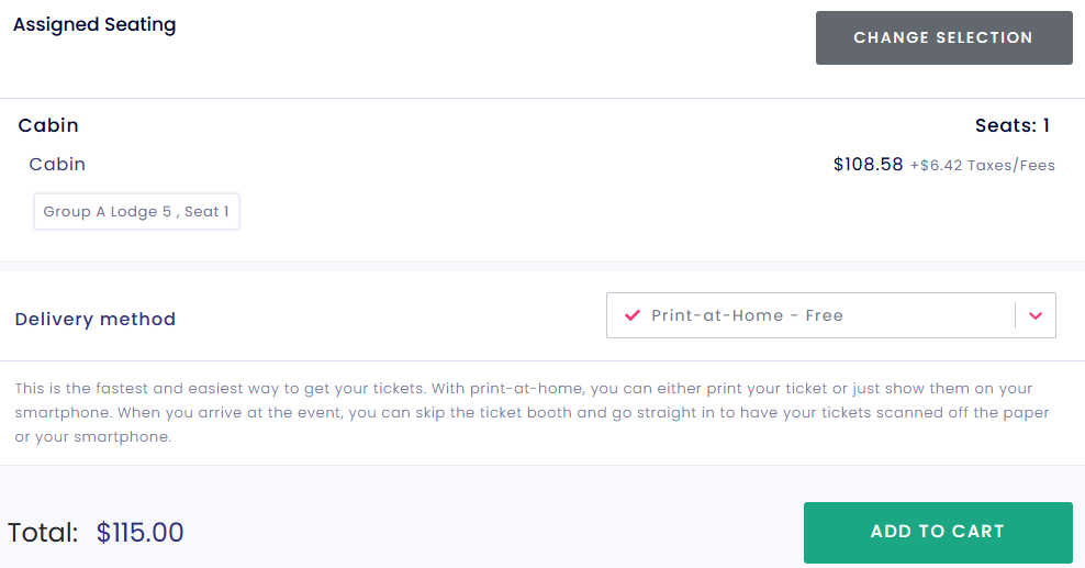 Now that you have selected a Seat/Spot, time to click [Add to Cart]: